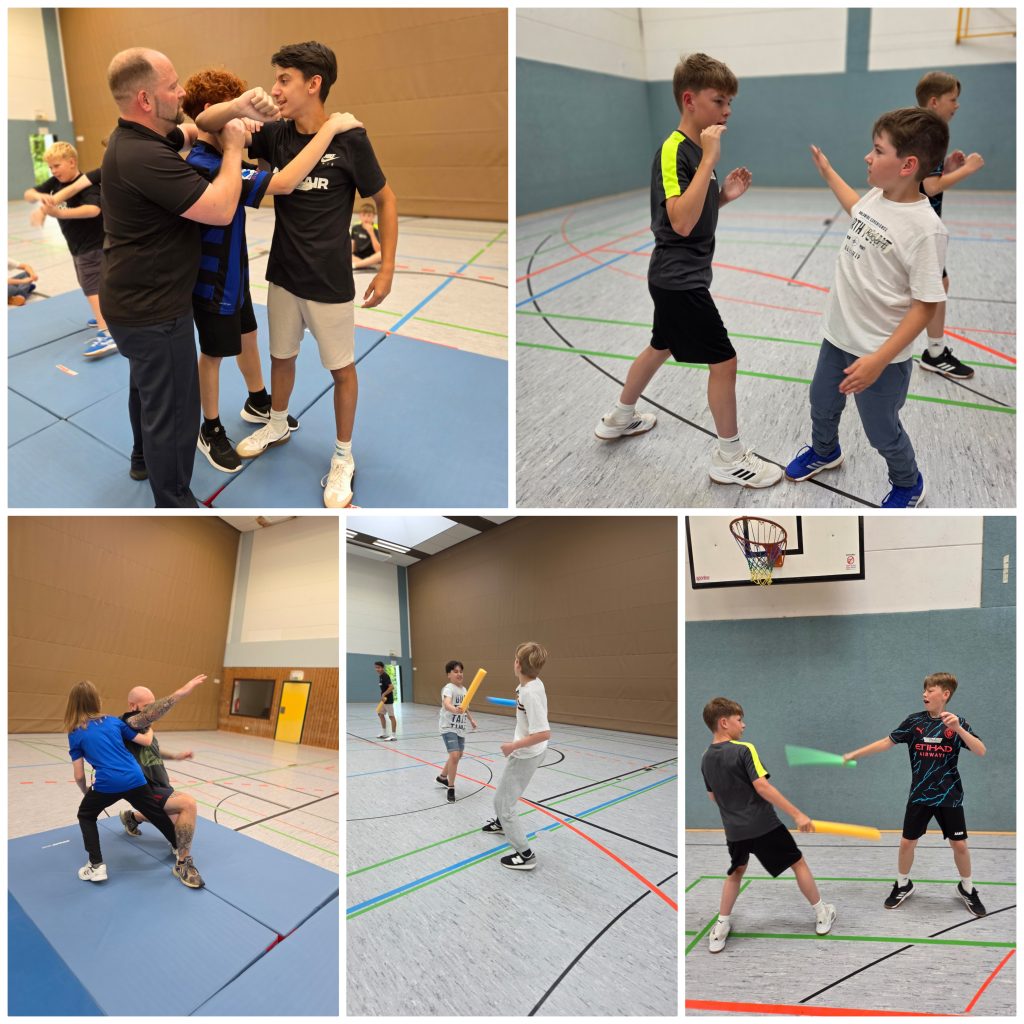 In der ersten Ferienwoche haben vom 15.07.2025 bis zum 17.07.2025 elf Schüler aus den Jahrgangsstufen 5 bis 7 erfolgreich an einem dreitägigen Selbstbehauptungs- und Coolnesskurs teilgenommen, der durch Herrn Mike Seidl (Checkpoint) und unsere Schulsozialarbeiterin Frau Germes durchgeführt wurde.