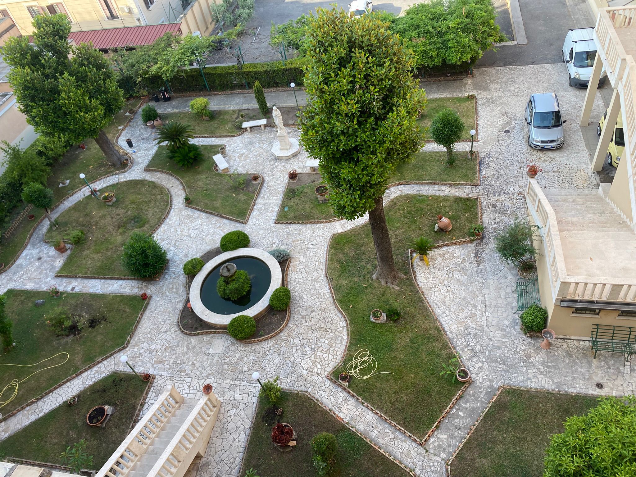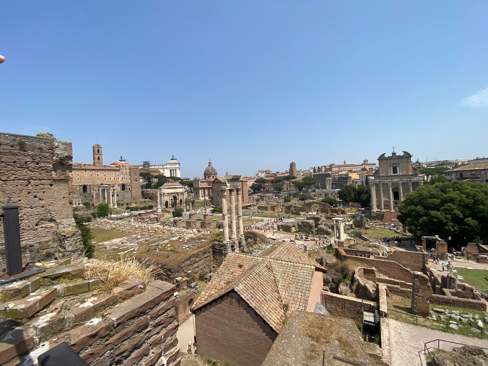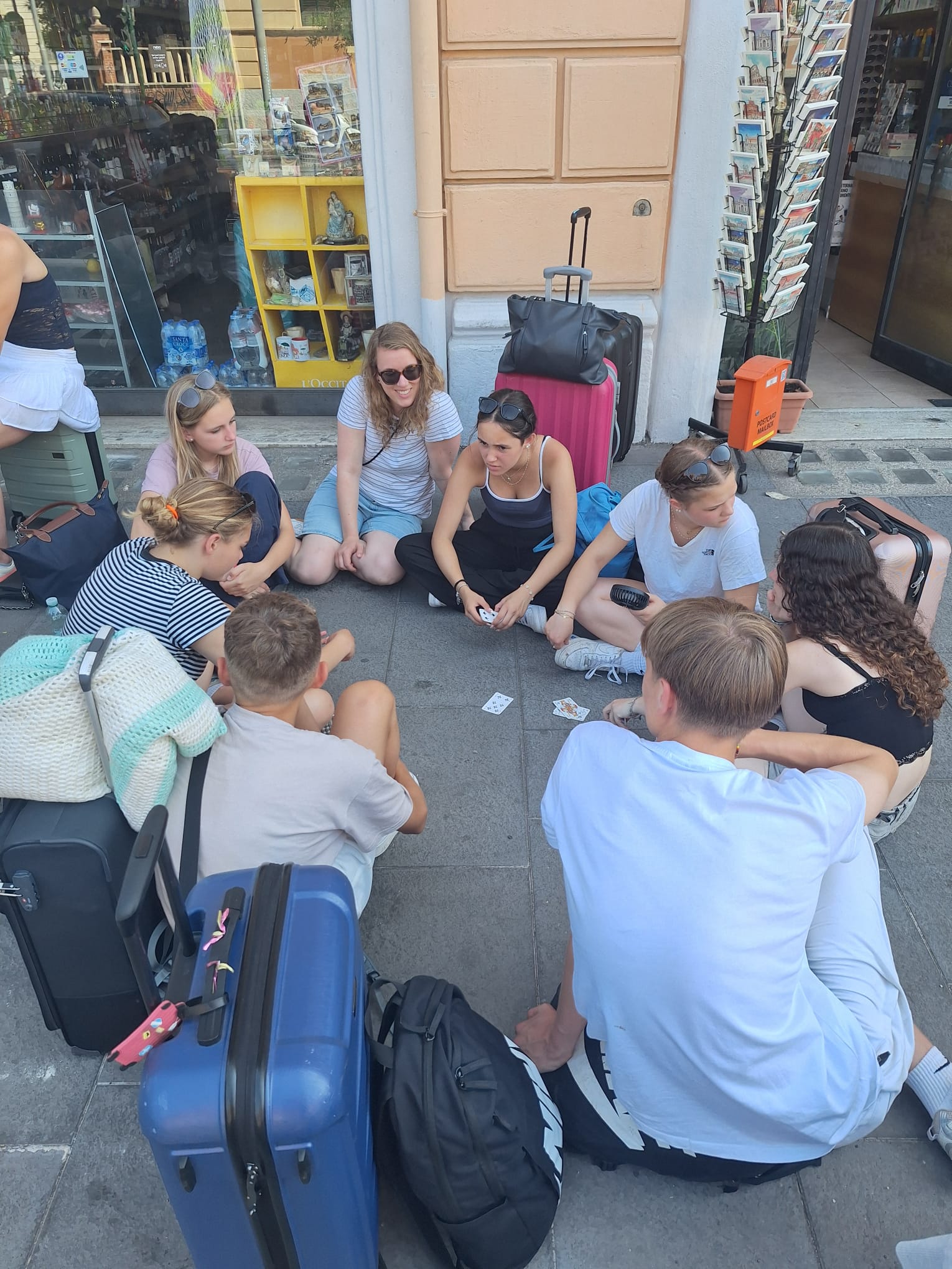 Der erste Tag begann am Flughafen in Düsseldorf, wohin uns unsere Eltern in Fahrgemeinschaften gebracht hatten. Von dort ging es ab ins heiße Rom. Knapp 35 Grad zeigte das Thermometer, als wir in Fiumicino landeten, einem kleinen Nachbarort von Rom. Von dort aus fuhren wir mit dem Bus zu unserer Unterkunft, zum Glück mit Klimaanlage. Unsere Unterkunft war das „Gästehaus Casa San Vincenzo Pallotti“, ein altes Kloster mit Nonnen, die leider nur Italienisch sprachen. Aber dank Google Übersetzer klappte die Verständigung trotzdem gut.
