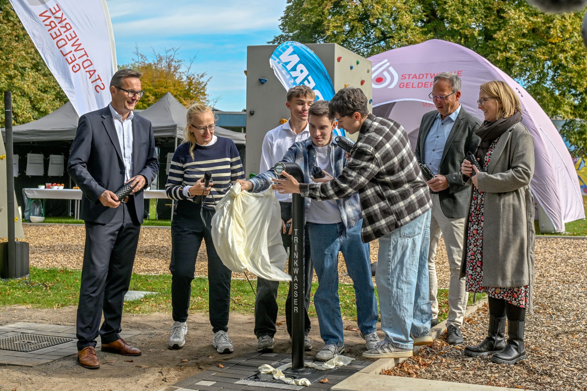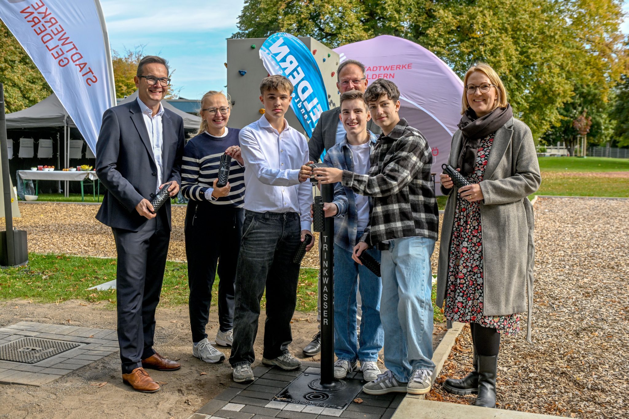 Beim Projekt „CityUpgrade“ debattierten rund 130 Jugendliche im Frühjahr darüber, was die Stadt Geldern noch gut gebrauchen könnte. Nun wurde als erste Idee ein Trinkwasserspender am Schulcampus in Betrieb genommen.