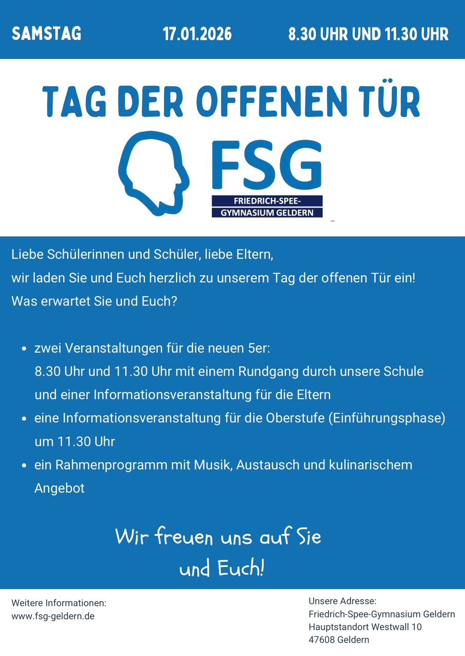 FRIEDRICH-SPEE-GYMNASIUM GELDERN | Westwall 10 | 47608 Geldern | +49 2831 8494 | sekretariat@fsg-geldern.de