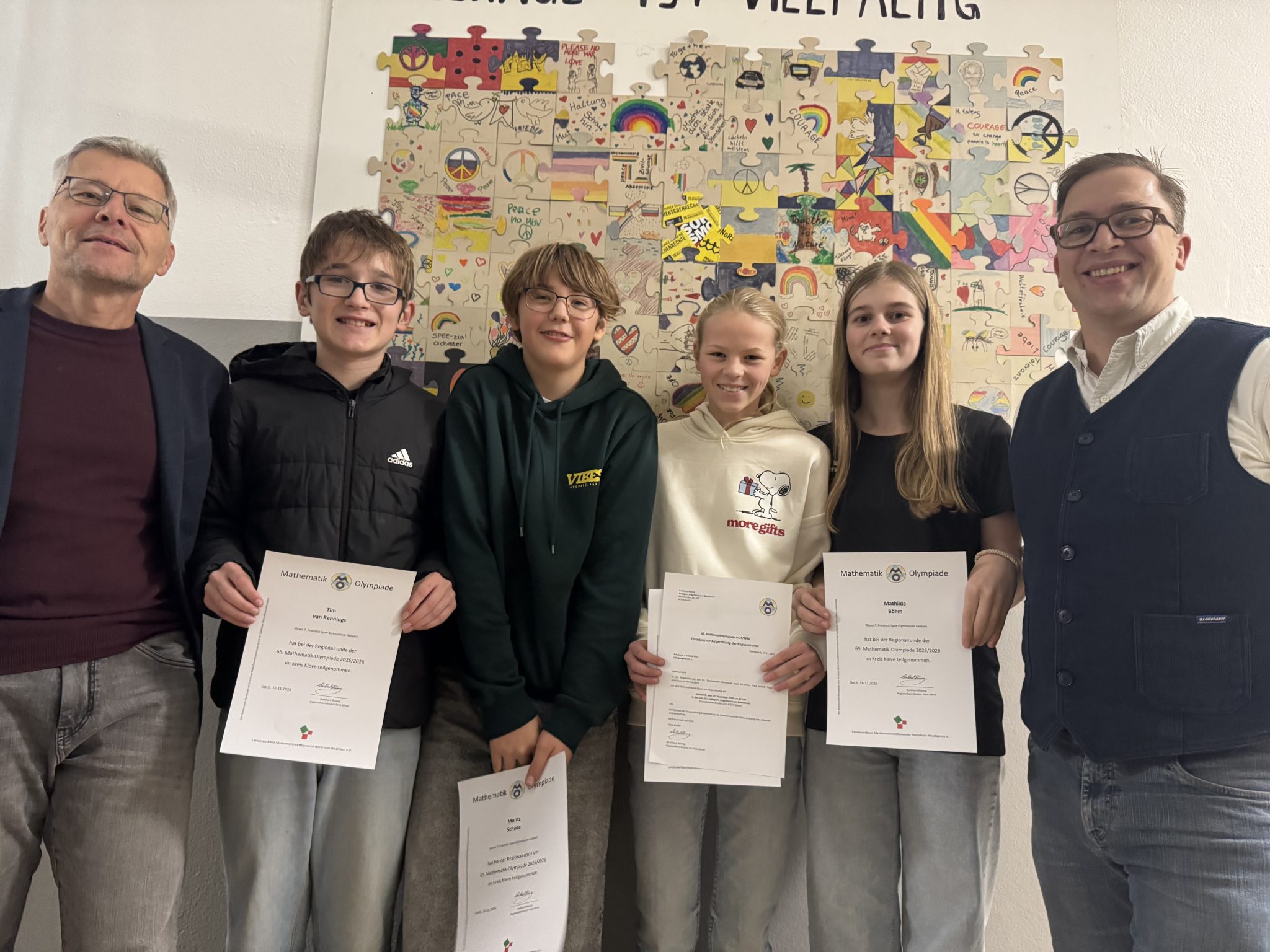 Auch in diesem Schuljahr nahmen wieder einige mathematisch begeisterte Schülerinnen und Schüler unserer Schule erfolgreich an der Mathematik-Olympiade teil. Die Olympiade gehört zu den anspruchsvollsten überregionalen Schülerwettbewerben in Deutschland und fordert logisches Denken und kreative Lösungen – alle Schülerinnen und Schüler zeigten großen Einsatz und beeindruckende Leistungen.Die besten Knobelnden qualifizierten sich für die Regionalrunde. Besonders erfreulich:
