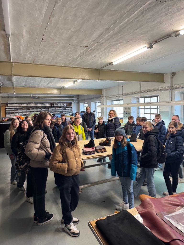 Am Montag den 17.02.25 unternahmen wir die 7b und 7c einen Ausflug in eine Lederfabrik, und es war eine sehr interessante, aber auch eindrucksvolle Erfahrung. Schon bei unserer Ankunft (Heinen,Wegberg/ A+B,Kapellen) konnten wir die imposante Größe der Fabrik und die vielen Maschinen sehen, die für die Lederverarbeitung verantwortlich sind. Unsere Führung begann mit einer kurzen Einführung in den gesamten Produktionsprozess, von der Rohhaut bis zum fertigen Lederprodukt. Es war faszinierend zu beobachten, wie die verschiedenen Schritte der Lederherstellung abliefen. Wir konnten sehen, wie die Häute behandelt, gefärbt und in Form gebracht wurden.