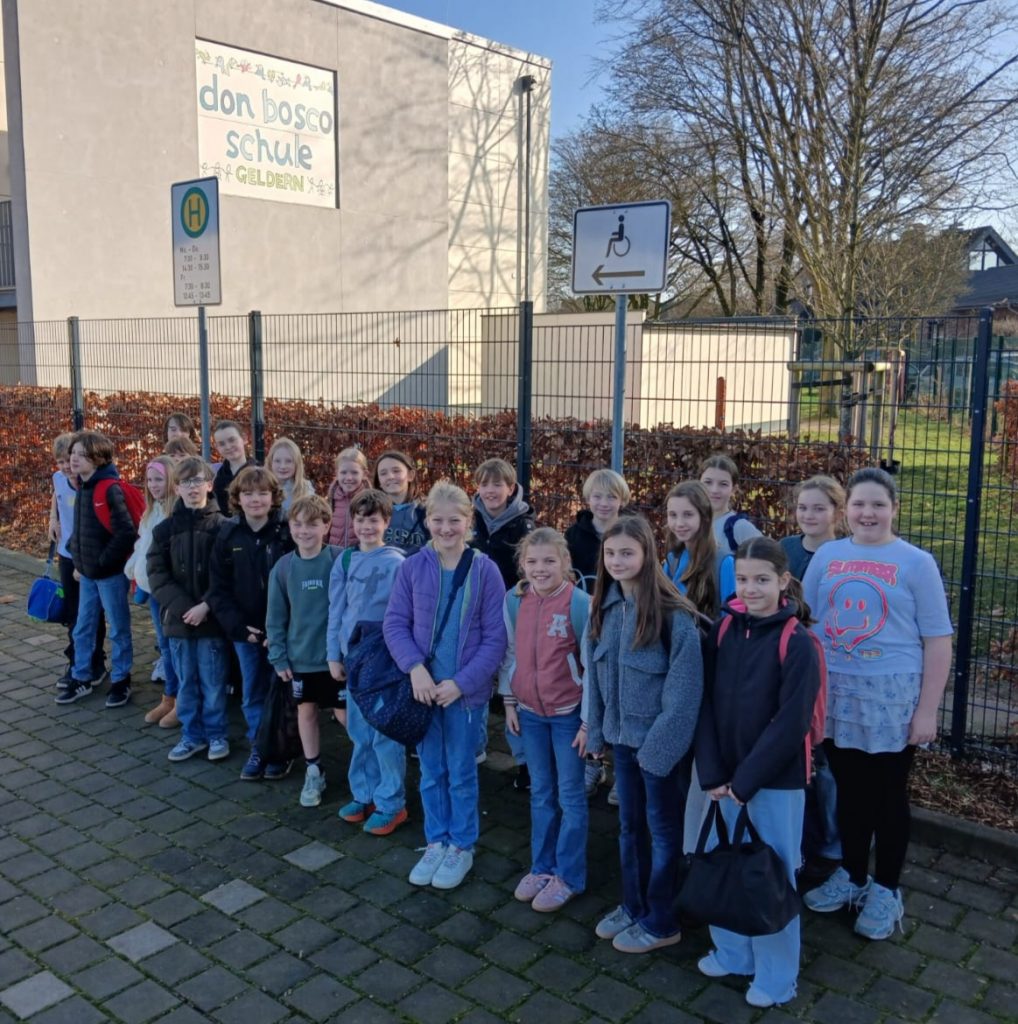 Am Freitag, 27.02.2026, war die Klasse 5b zu Besuch an der Don Bosco Schule in Geldern. Dort durften wir zwischen verschiedenen AG‘s wählen, die wir gemeinsam mit den Schülerinnen und Schülern dieser Schule besuchten. Es gab z.B. die Lauf-AG, die Bücherwürmer, die Mädchenfußball-AG oder die Wellness-AG. Die Kinder, die die Lauf-AG Gewählt hatten, sind zum Bollwerk gegangen und liefen dort Runden: erst eine Runde zum Aufwärmen, dann Dehnübungen und dann mussten wir nochmal 15 Minuten am Stück laufen. Bei der Mädchenfußball-AG wärmte man sich auf, dann spielte man ein paar Pässe und danach gab es noch ein Abschlussspiel. Die Koch-AG hatte selber eine eigene Pizza mit vielen leckeren Zutaten gebacken. Alle Teilnehmer der AG erfreuten sich an diesem tollen Erlebnis. Jeder aus der Klasse bekam ein kleines Pizzabrötchen. Bei den Bücherwürmern wurde viel gelesen, entweder nahm man ein Buch aus der Stadtbücherei oder eins aus dem großen Bücherkasten. Am Ende sollte jeder sein Buch in einem Steckbrief vorstellen. Diese AG ist für jeden ein Spaß, der Ruhe liebt! Beim Wellness ging es ähnlich zu. Jeder konnte sich in Ruhe hinlegen, während Entspannungsmusik lief. Es war eine schöne AG!